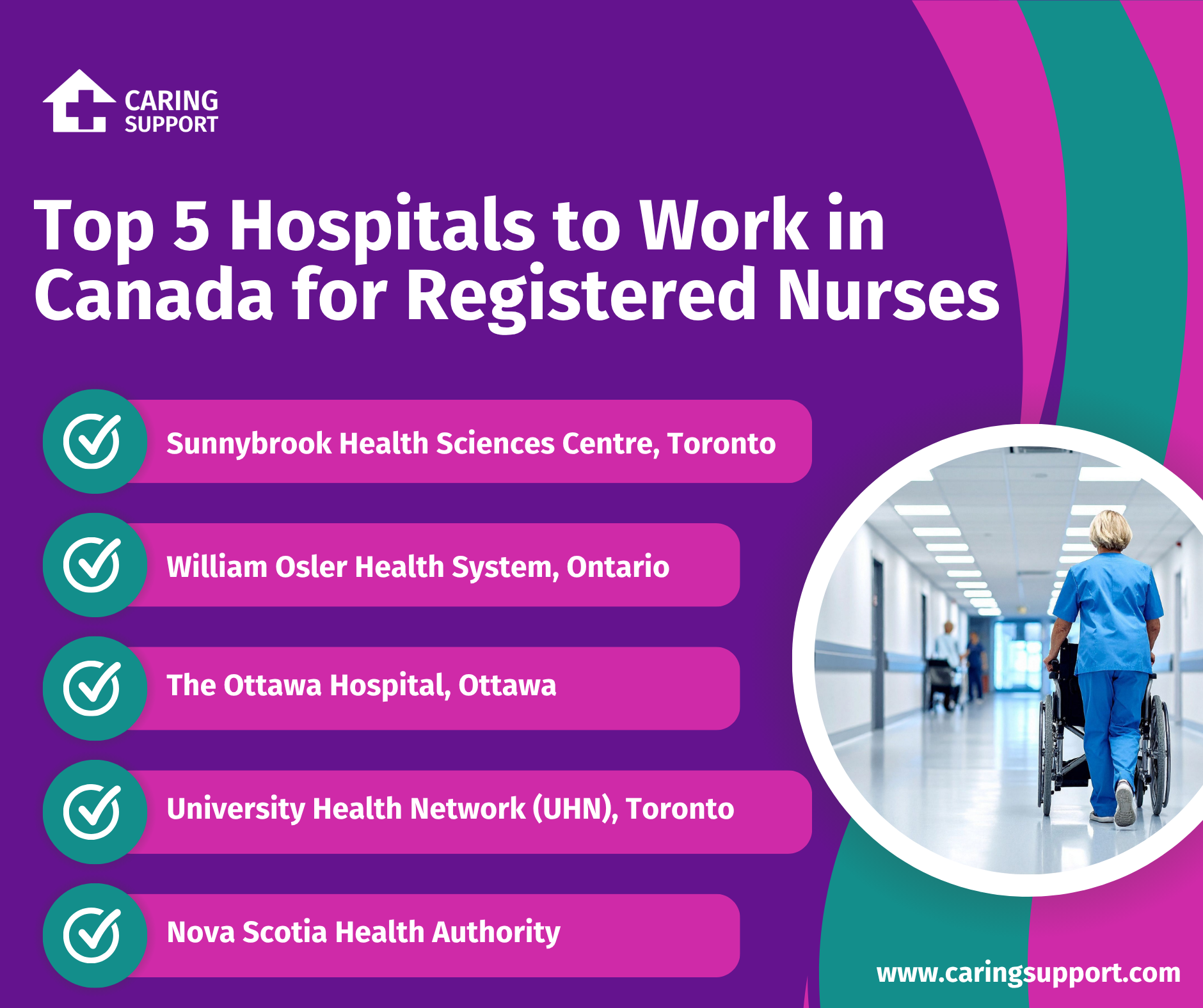 At Caring Support, we connect nurses and healthcare professionals to top Canadian employers, helping them find rewarding opportunities that align with their goals. Here are the top 5 hospitals recommended for RNs in Canada.
